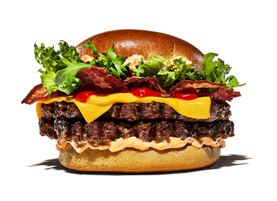 Gourmet Grill Chipotle dubbelt upp, hela 300g grillat nötkött i ett bistrobröd tillsammans med ost, bacon och premiumsallad. Allt i perfekt balans av rökig chipotlemayo och het buffalosås.