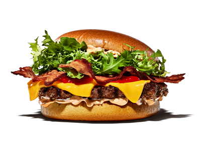 Njut av het buffalosås och rökig chipotlemayo i perfekt balans med 150g grillat nötkött, premiumsallad, ost och bacon i ett bistrobröd.